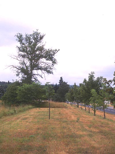 een rijtje bomen geplant langs de rand van het vroegere tracé en